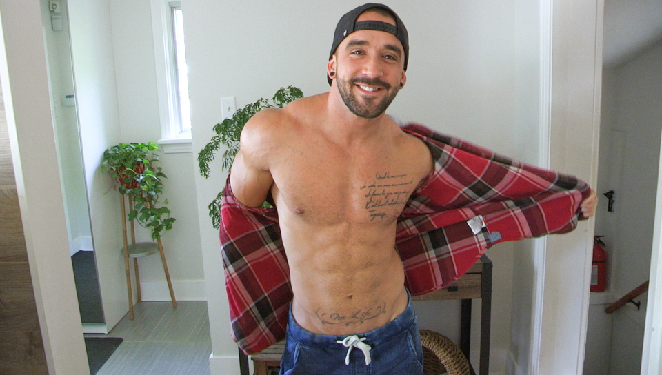 Unmasked stud Alexandre strokes his cock in the kitchen!!
