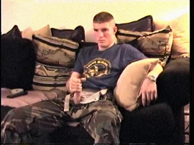 Apparently his dry spell continues, so Justin is back for round two. Remote control in one hand and lube in the other, horny Justin strokes his cock for quite a while, even holding a leg back so we can just begin to see his tight asshole, before he sprays his cum load on a plastic lid so he can taste it.